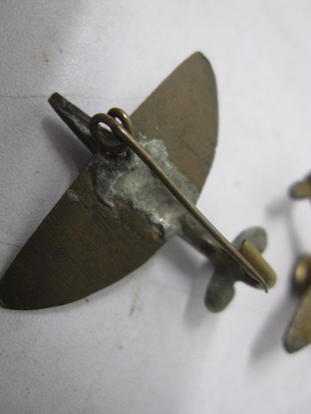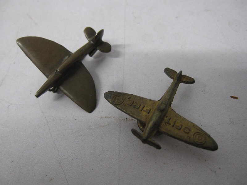 This is 2 wartime period bronze RAF spitfire badges and one is marked . the other one has the lapel attachment button and the other has a back pin fitting.