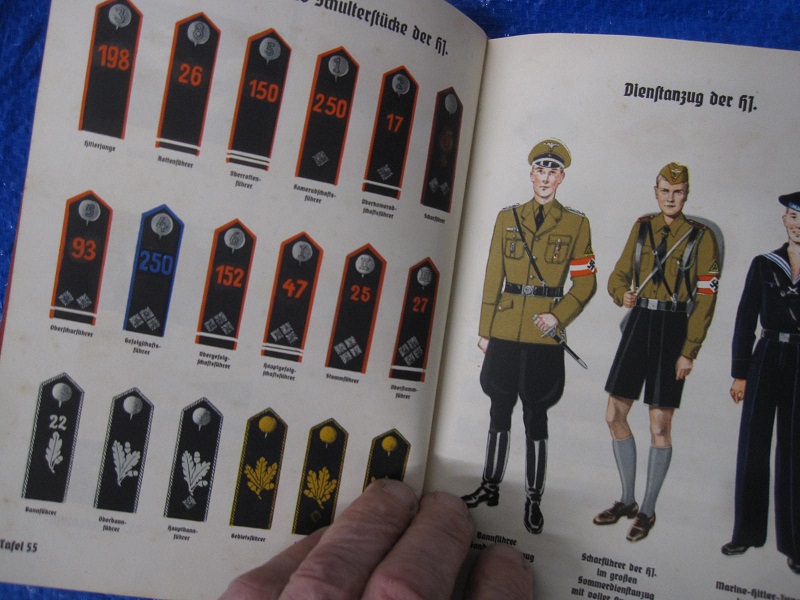 A very rare original 613 pages NSDAP Organization Book of the Party which is dated 1940. has all the Party paramilitary formations  which shows you the last patten insignia and uniforms then also the party command structures . much of this is in colour with descriptions and also black and white . inside of the front cover is a picture of the Stormtrooper owner who’s name is stamped on the back cover,Horst Beetz . this publication is the NSDAP Party at War. the over all condition is very good.