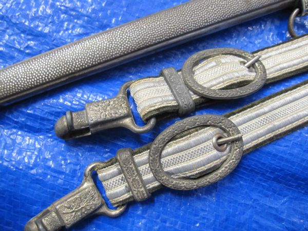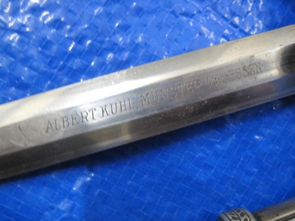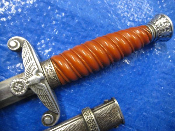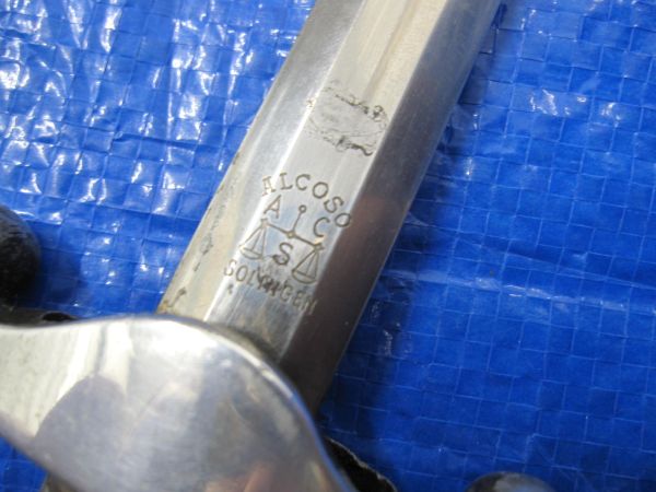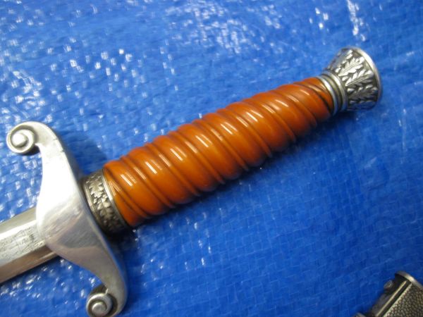This orange grip Wehrmacht Parade dagger comes with the hangers and inscription on the blade of the distributer from Essen and the Maker Alcoso of Solingen. the blade has some light water marks which would mostly polish off. the Hanger’s are also stamped with the quality control markings. DRGM .