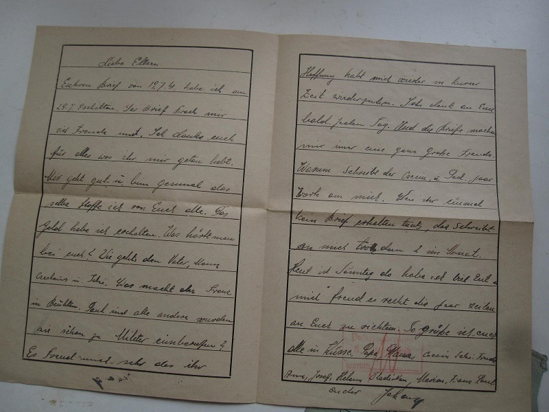 The Camp letter looks like it is a German Prisoner who is writing home to his family and has the clear sensor stamp allowing it to be sent. has his name and also his blockhouse camp number . this letter is dated 1941.
