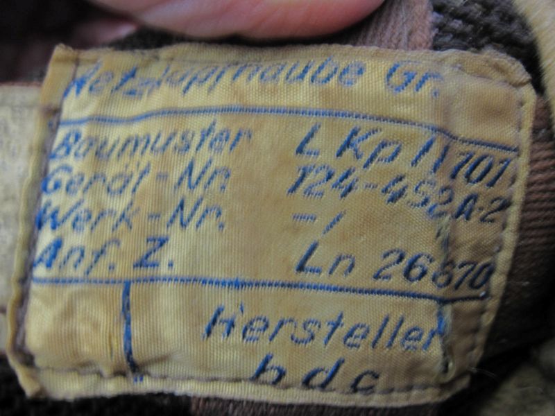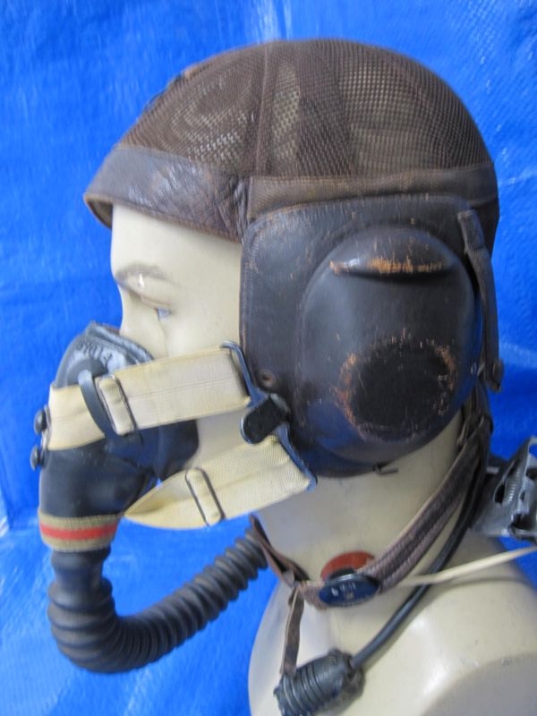 This is a pilots set with all the electrics head set and the oxygen mask which is original but with some made up parts to complete . has the later hose plus on the mask is marked the wartime code BWZ which is Auer Gesellschaft AG Oranienburg . condition is good. the headsize for the helmet is large.