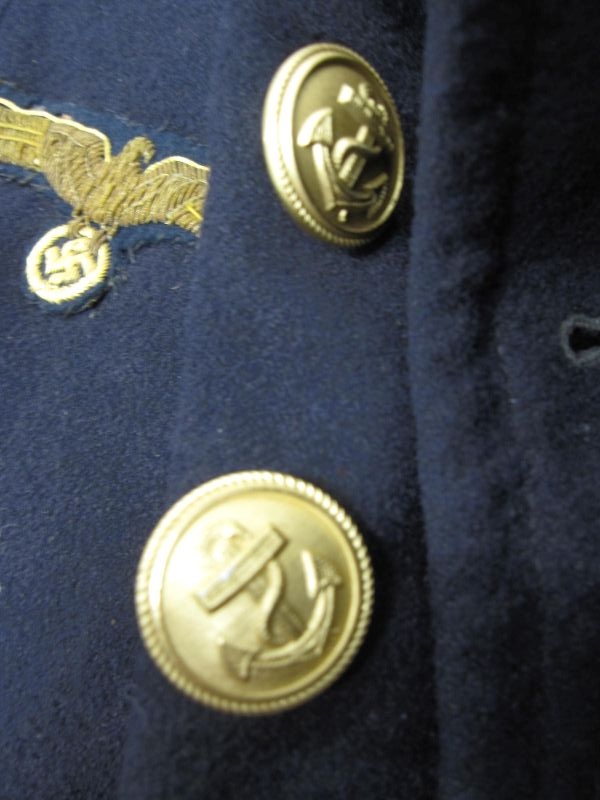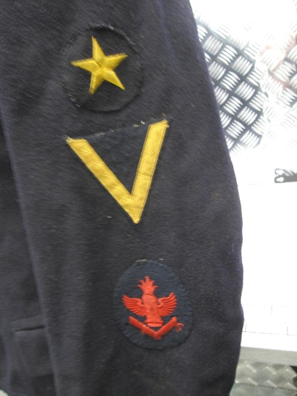 A top marine Gunners tunic in wool and plus silk inner liner. has batch stamp inside and also has 2 inner pocket’s, has the original sleeve insignia with all matching buttons. his name and naval number label has been removed. this tunic has naval stamp markings on the back of the inner liner and a stamp on the inside of one of the sleeves. also is a very good size with no moth damage.
